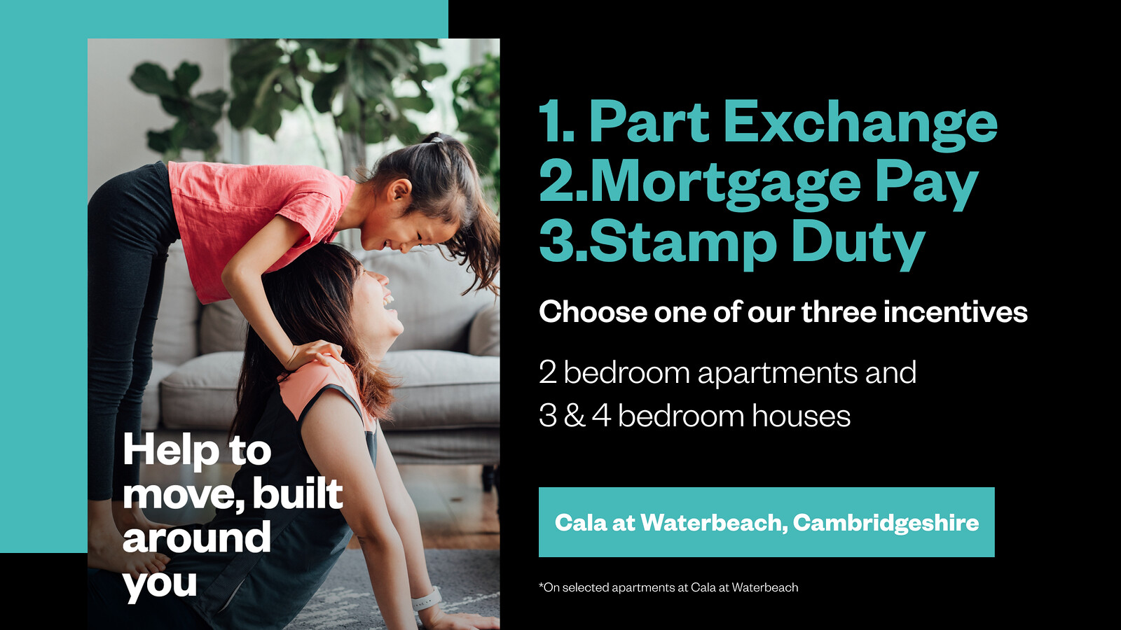 There are so many reasons to move into a quality specification new home at Cala at Waterbeach. To help make it happen, we have three great moving solutions that you can select from: Part Exchange, Mortgage Pay or Stamp Duty contribution. Cala. Let’s talk.