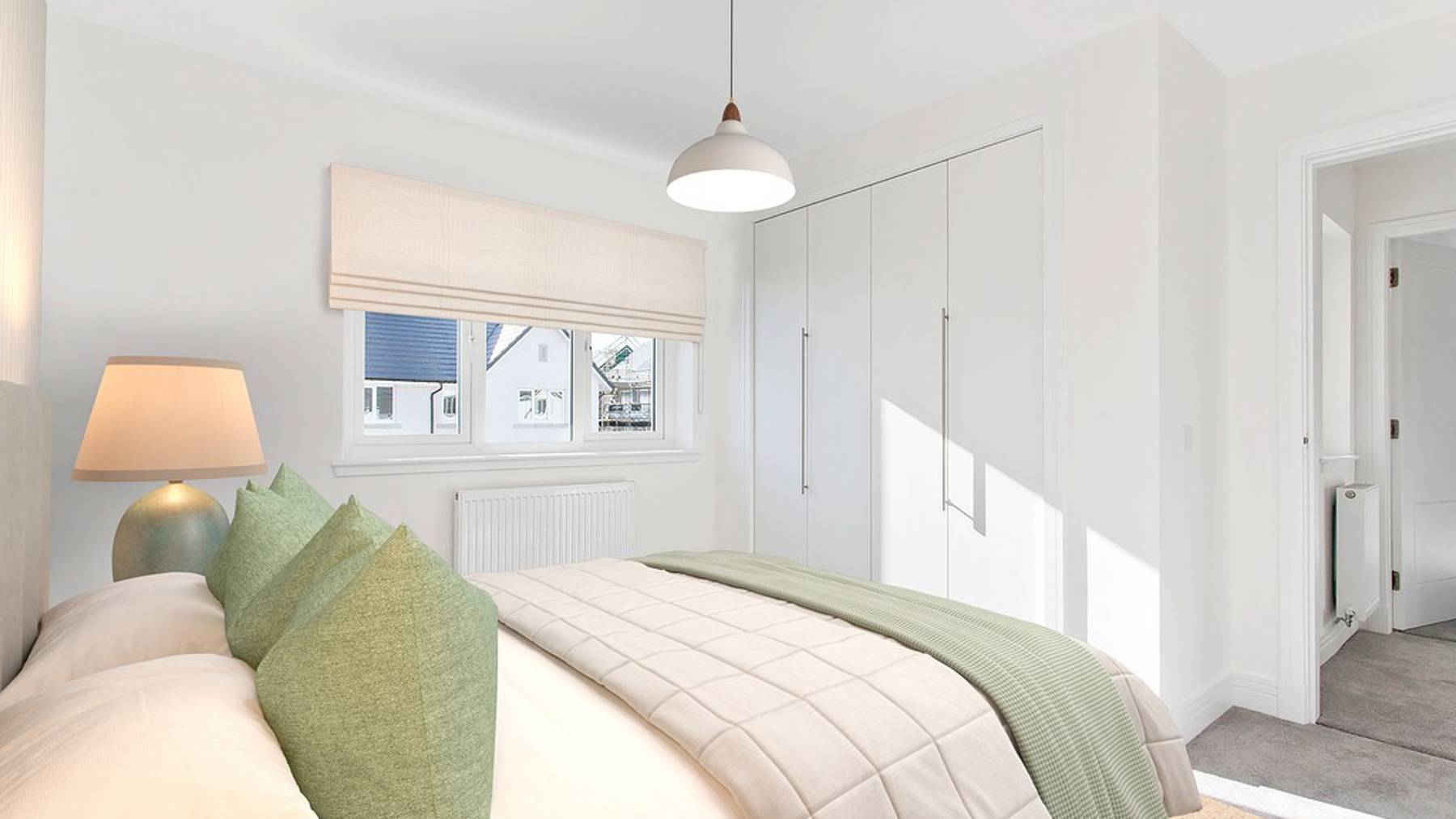 Plot 45: A one bedroom apartment benefits from 544 sq. ft. of space. The balcony is the ideal space to unwind after a long day. The bedroom includes a built-in wardrobe and is the perfect end-of-day retreat.