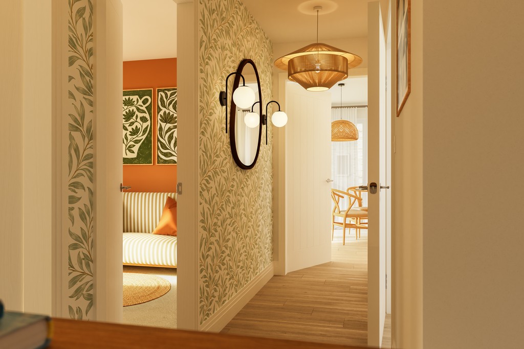 This is a virtual tour of The Hale Apartment, Plot 63 at Cala at Waterbeach. Computer Generated Images may show features fittings, décor, flooring and soft furnishings which are not fitted as standard in a Cala home. CGIs are used to suggest possible finishes that can be achieved in your home at an additional cost. Please consult a Cala representative for further details.