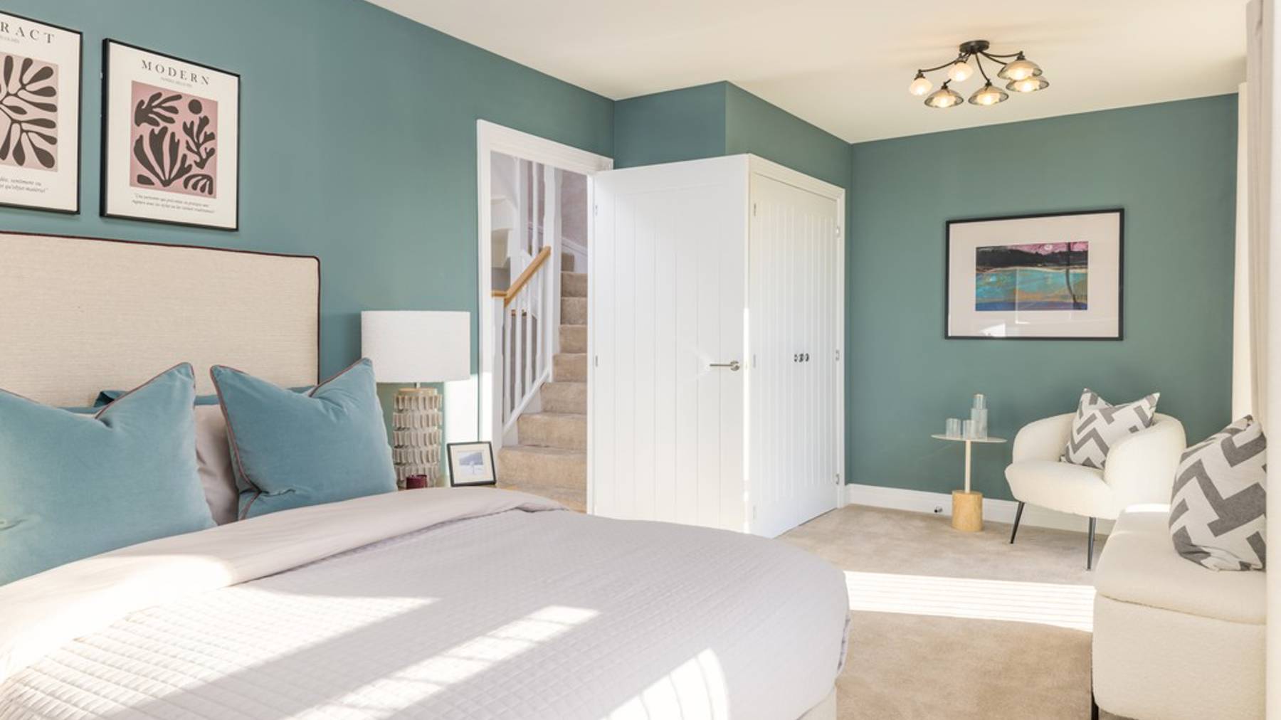 Up on the second floor, spacious bedroom one has an ensuite and built-in wardrobes, while Bedroom 3, located opposite, is also well-proportioned.