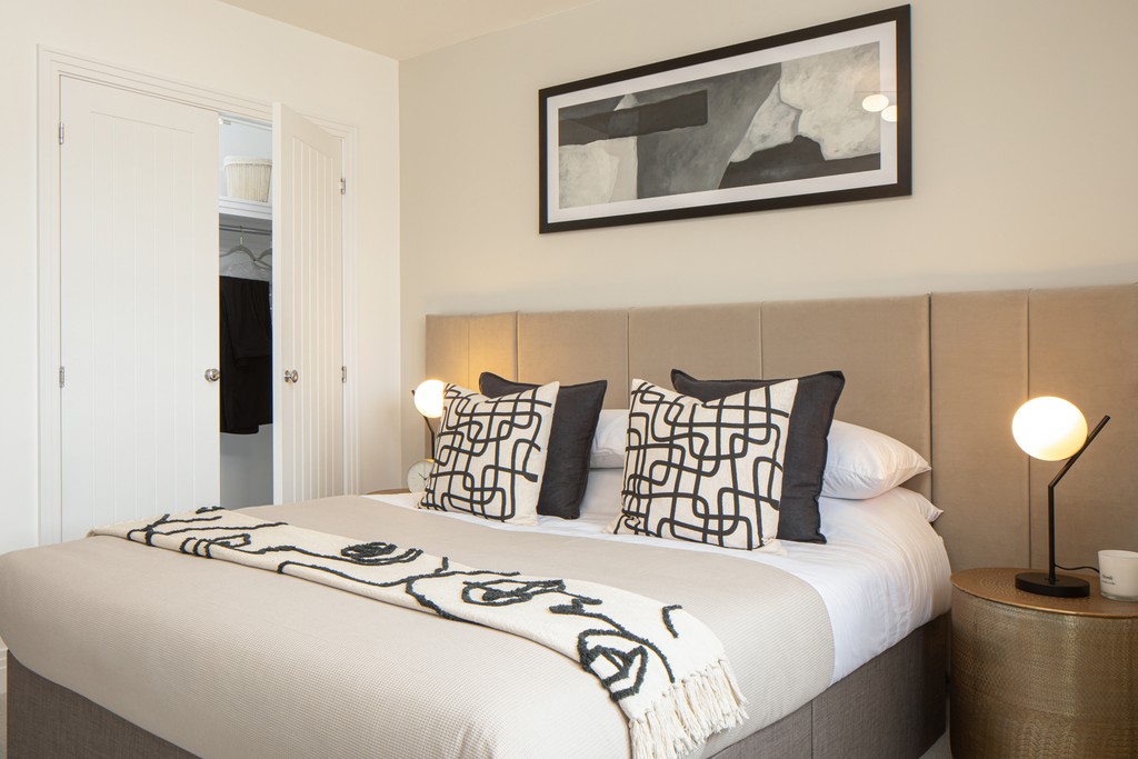Plot 31: With 595 sq. ft. of space to enjoy, the one bedroom apartment offers plenty of space for family or friends. It’s perhaps already clear who will select the one with en suite and built-in wardrobe. A stylish family bathroom completes this contemporary living space.