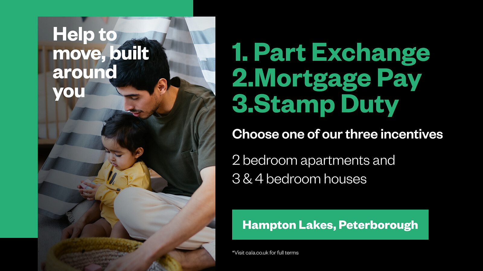 There are so many reasons to move into a quality specification new home at Hampton Lakes. To help make it happen, we have three great moving solutions that you can select from: Part Exchange, Mortgage Pay or Stamp Duty contribution. Cala. Let’s talk.
