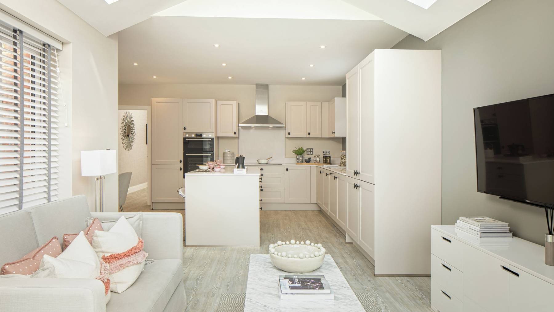 Enjoying two sets of French doors, the informal surroundings of The Thorney's light and airy island kitchen/dining room and family room are perfectly complemented with a convenient downstairs cloakroom and separate utility room. The large sitting room to the front also provides impressive living space to relax and unwind.