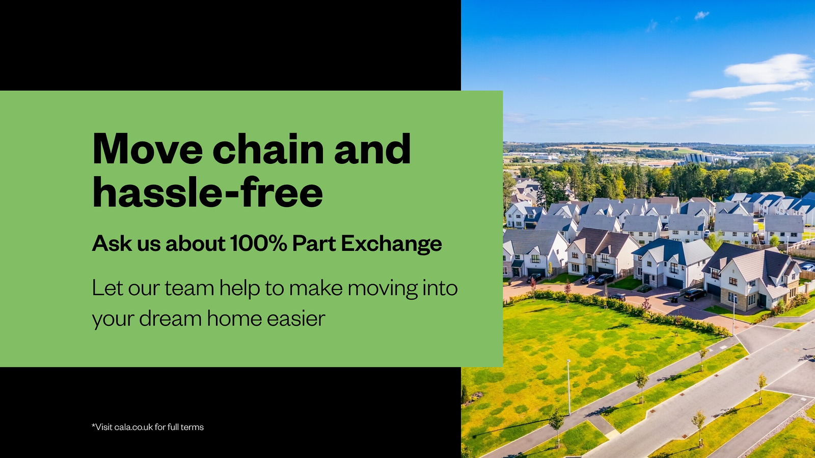 Move into a new Cala home without a chain - avoiding estate agent fees and survey/home report costs in the process.