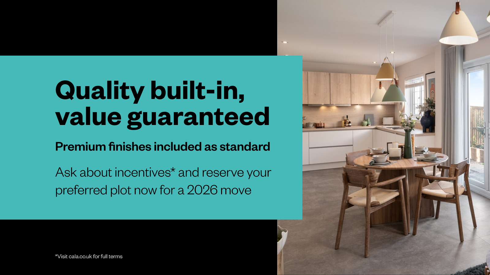Move into a new Cala home without a chain - avoiding estate agent fees and survey/home report costs in the process.