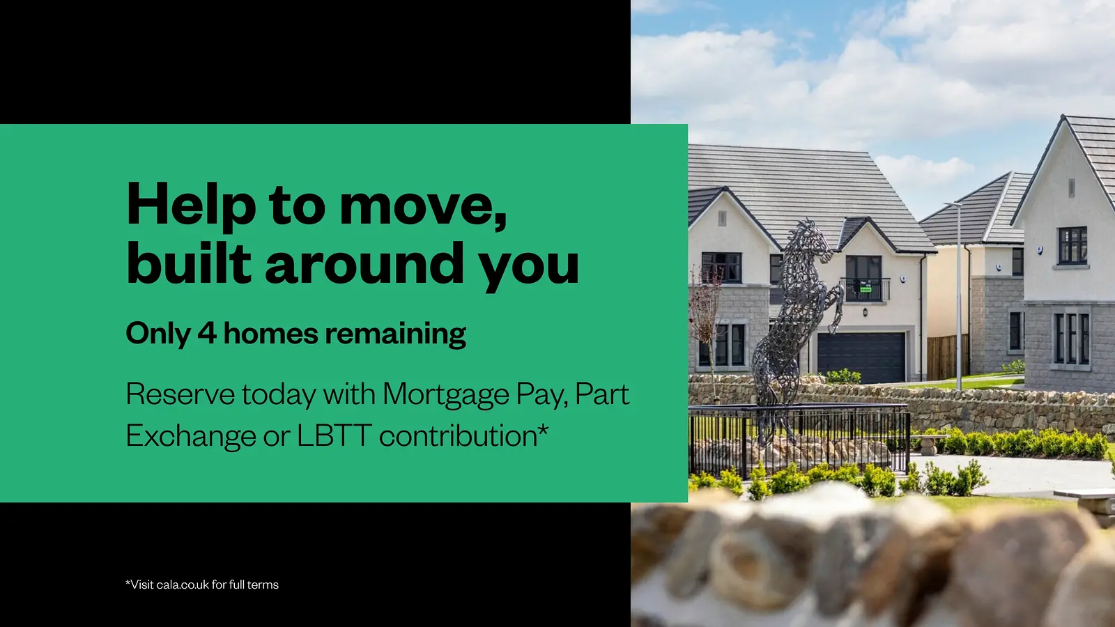 Move into a new Cala home without a chain - avoiding estate agent fees and survey/home report costs in the process.