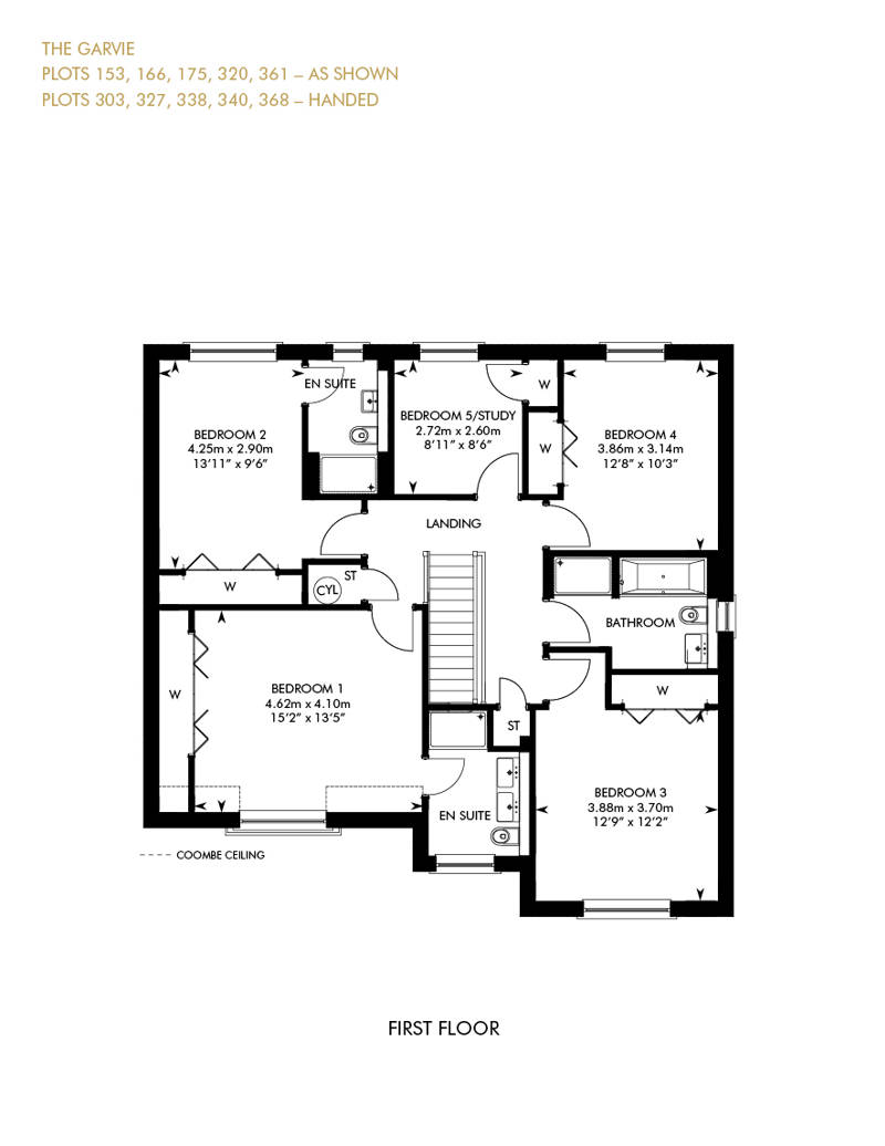 Comprising five spacious bedrooms, two with an en suite, The Garvie has been designed for flexible family luxury. From the spacious hallway, a formal lounge and the open plan kitchen/family/dining area are both accessed via double doors. Upstairs are four elegant bedrooms, two of which are en suite, along with a four-piece family bathroom. A fifth bedroom could also be used as a private study for home working.