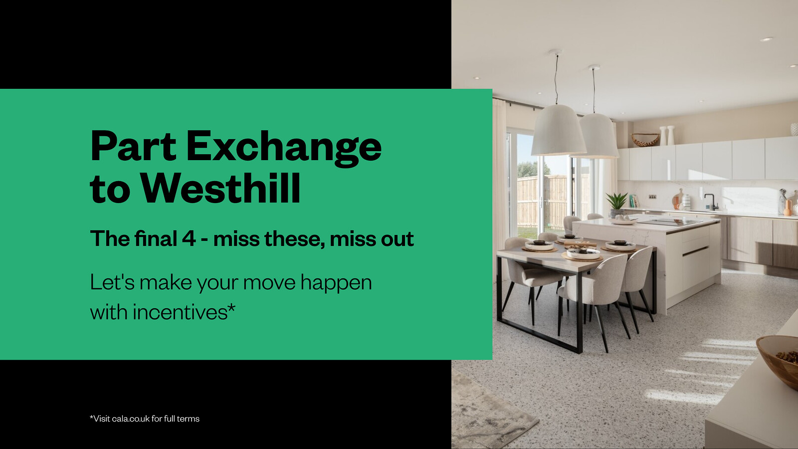Move into a new Cala home without a chain - avoiding estate agent fees and survey/home report costs in the process.