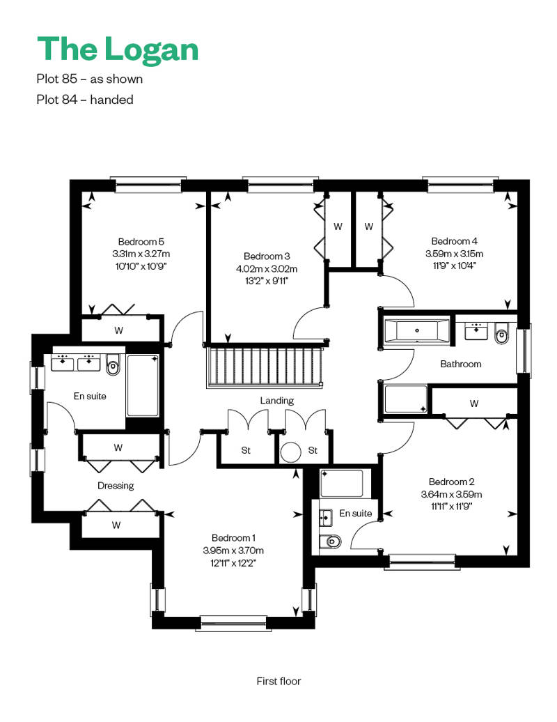 The Logan offers an exceptionally spacious open plan family/dining room and kitchen to the rear as a hub for family life, while a large formal lounge to the front of the home is excellent for entertaining. The spectacular galleried landing sweeps round to five bedrooms, two with an en suite, and a spacious family bathroom.