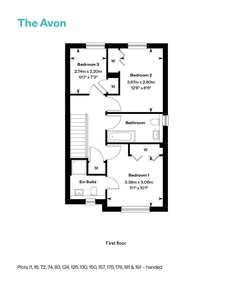 The Avon is a stylish 3 bedroom family home. The ground enjoys a spacious open plan kitchen and dining area, complete with French doors and fully integrated appliances. The private lounge to the front of the home is the perfect space for enjoying some quiet time with friends and family. Upstairs, two of the bedrooms benefit from fitted wardrobes with sliding doors as well as an en suite to bedroom 1.