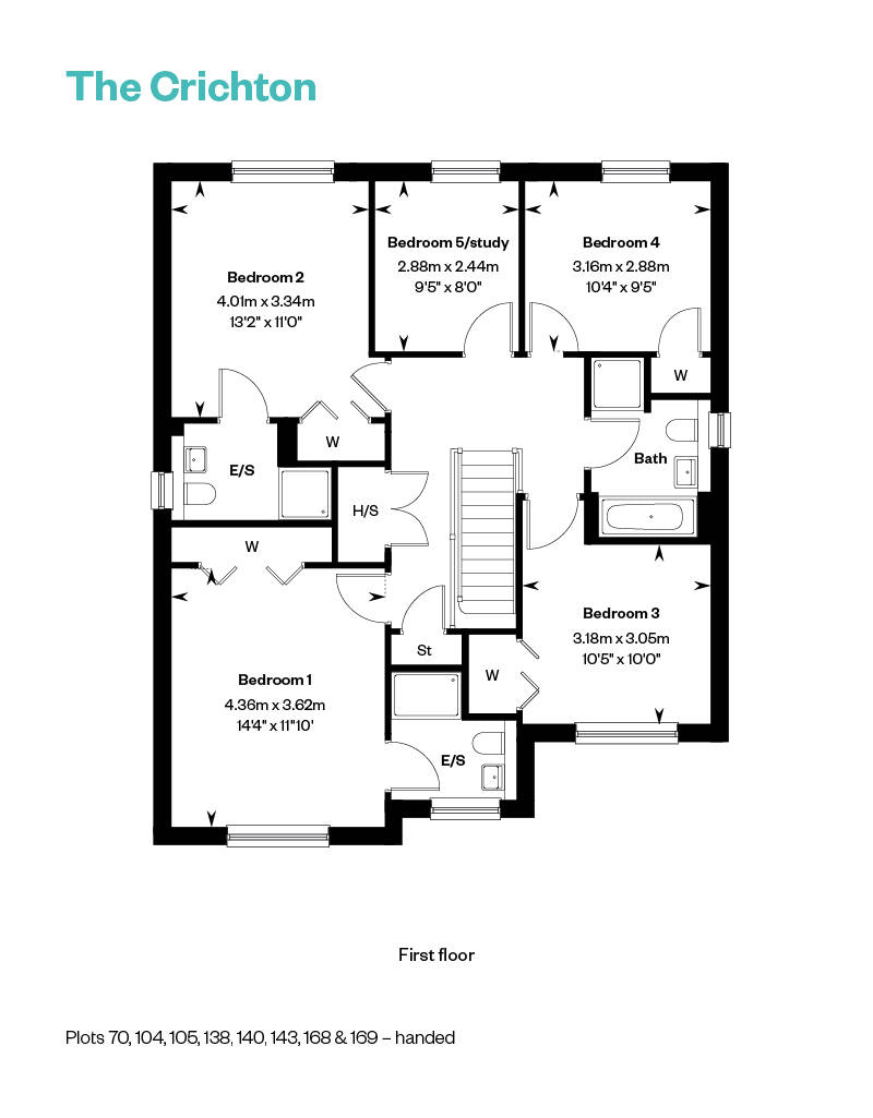 Four double bedrooms, two with en suite, plus a study/fifth bedroom make The Crichton a family home with room to grow.