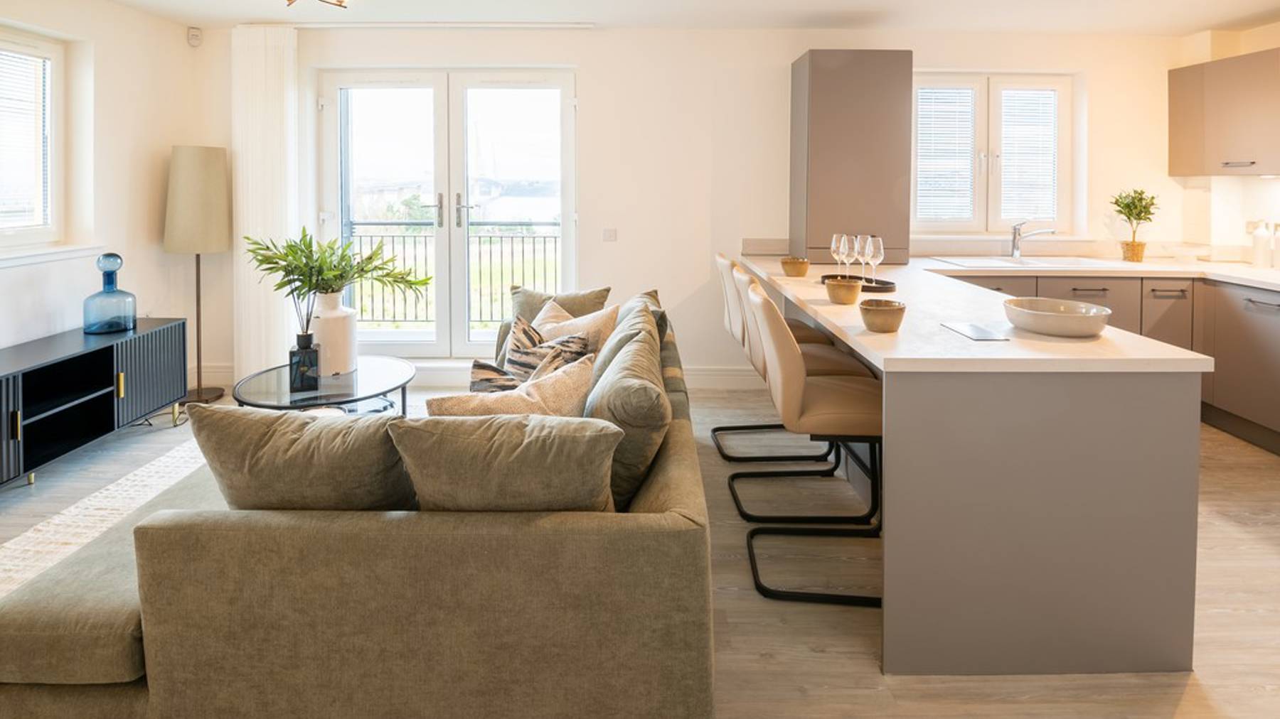 The kitchen with the latest Bosch integrated appliances and wraparound peninsula allows just enough privacy while ensuring you’re still part of any family activity or special occasion. Wander past the family bathroom and notice the Laufen sanitaryware. Imagine a luxurious evening lying back and relaxing in style.