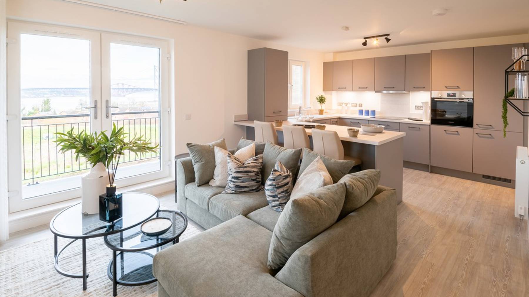 Three-zone living makes this the perfect first floor apartment for young families, couples or downsizers. The living/dining area enjoys generous proportions, with double glass doors allowing natural light to flood in.