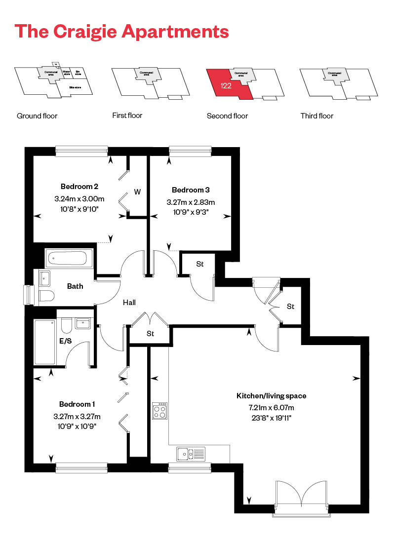 Plot 122: Craigie Apartment – 3 Bed Second Floor - 3 Bedroom Home