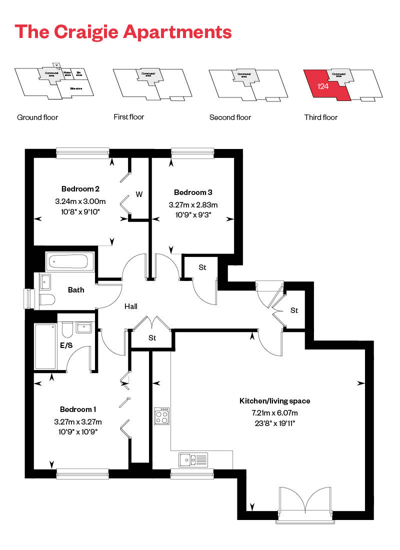 Similar in style and layout to our Craigie Apartment, and featuring our high specification, why not take a virtual tour of our interior designed 3 bedroom show apartment online today?