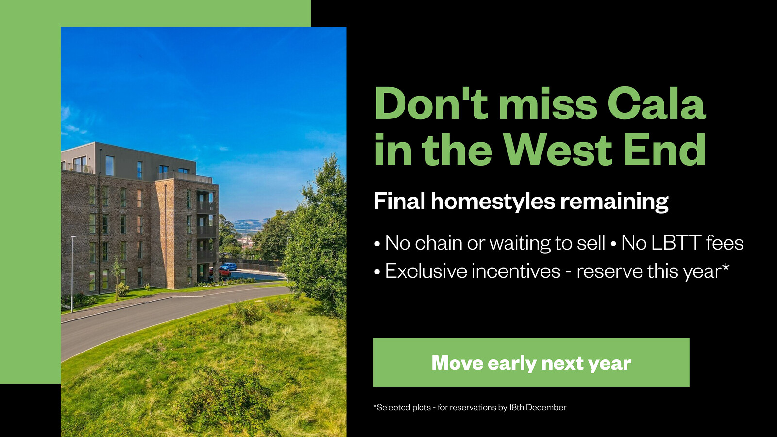 Move into a new Cala home without a chain - avoiding estate agent fees and survey/home report costs in the process.