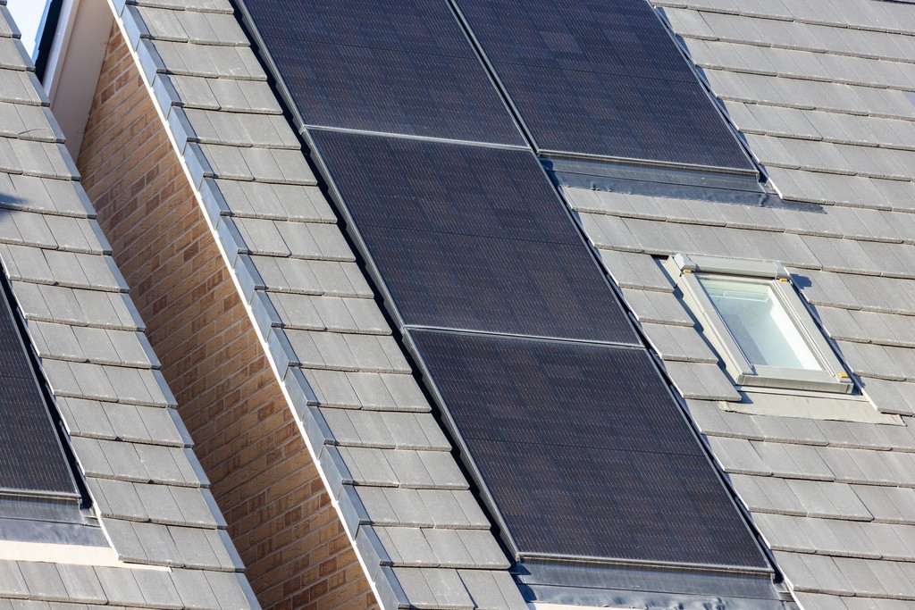 • Photovoltaic Solar Panels laid in-line on roof connected to mains power (panels vary per plot)