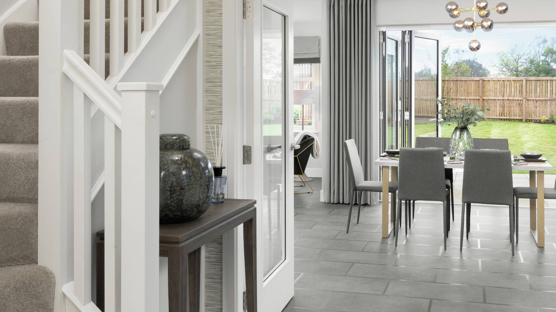 This impressive five bedroom family home combines flexible and practical space. An interlinked formal lounge and dining area give access to an open plan family area and kitchen to the rear, as well as a double integrated garage. Upstairs the landing leads to the spacious bedrooms, two of which are en suite, and well equipped family bathroom.