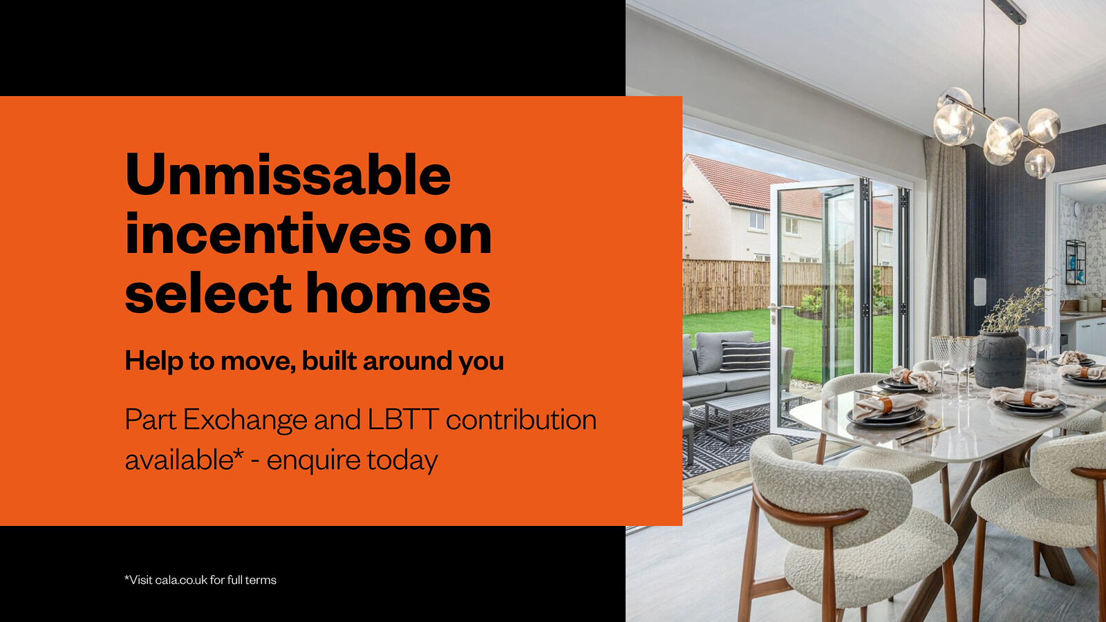 There are so many reasons to move into a high-specification new home at Mansefield Lea. To help make it happen, we have three great moving solutions that you can select from: Part Exchange, Mortgage Pay or LBTT contribution*. Cala. Let’s talk. *On select homes. For reservation by 23rd March 2026.