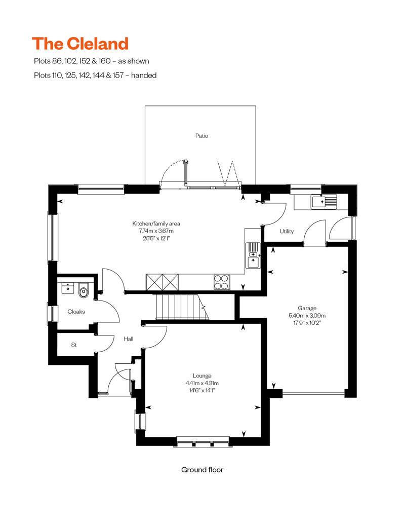 The four bedroom Cleland features a spacious formal lounge to the front with a generous combined family/dining area and kitchen to the rear, where bi-folding doors open out to the patio area and garden. A downstairs cloakroom, storage cupboards, utility room and integral garage cater for all practicalities. Upstairs, a generous landing leads to a family bathroom and four thoughtfully-designed bedrooms, two of which are en suite. All bedrooms benefit from fitted wardrobes.