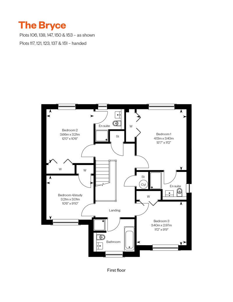 The charming Bryce features four spacious bedrooms - two of which are en suite – and a family bathroom with separate shower enclosure. Downstairs, an elegant lounge to the front of the home and the open plan kitchen and family/dining area are both accessible from the inviting entrance hall. A downstairs cloakroom, utility room and integral garage cater for all practicalities.