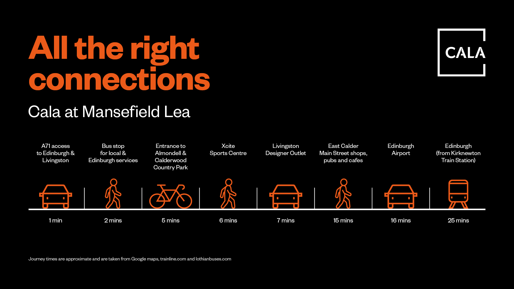 Mansefield Lea is located on the eastern edge of East Calder just two miles east of Livingston and benefits from excellent commuter links, offering easy access to the A71 to Livingston and Edinburgh - taking you to the capital in less than thirty minutes. The M8 is also close at hand, offering a comfortable 40-minute drive to Glasgow.