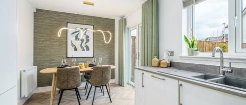 The modern open plan kitchen and dining area, with high end integrated appliances included as standard, enjoys access to the patio and rear garden via French doors, allowing for extended living space for family time or entertaining alike.