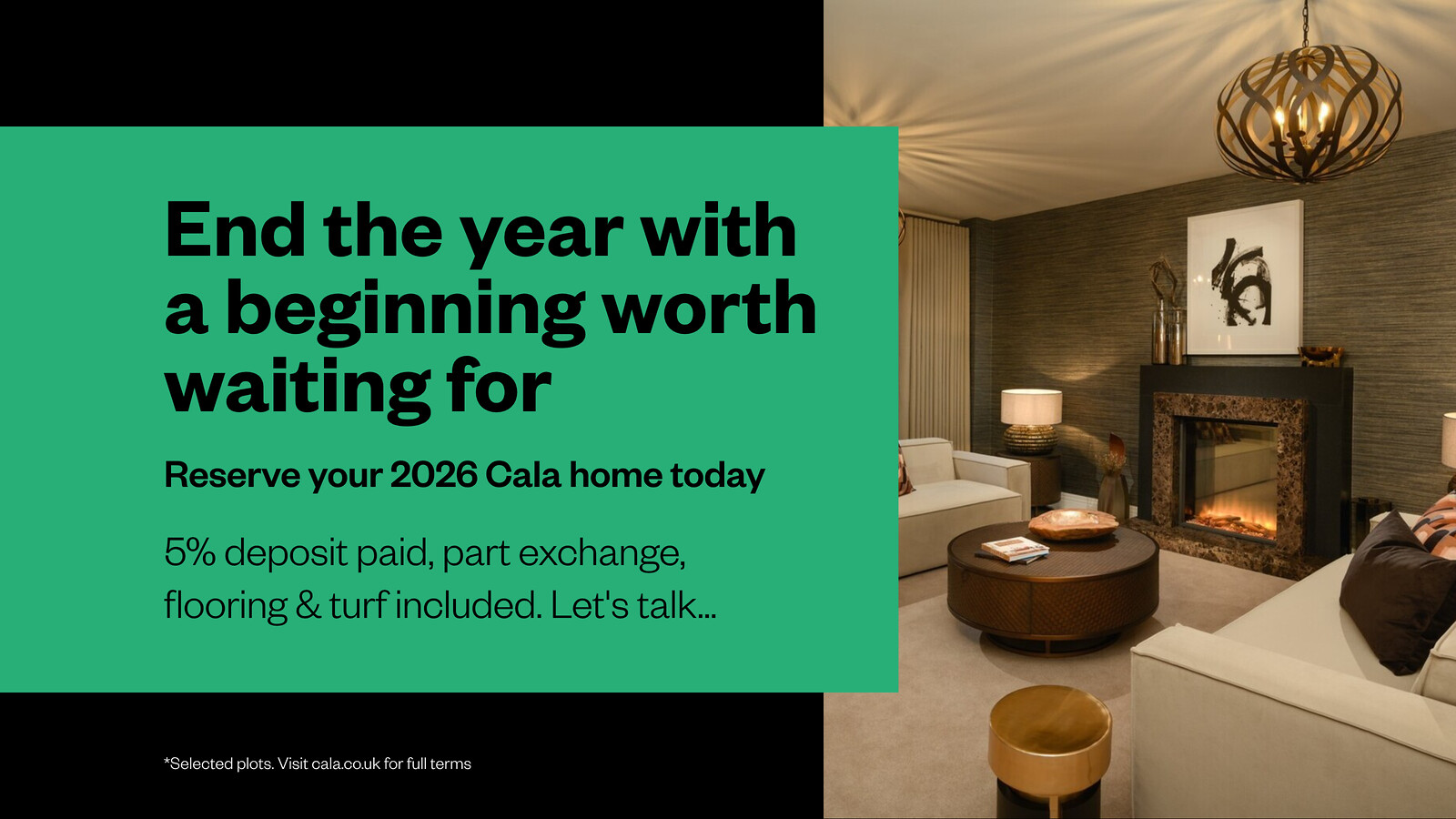 Get ready for the best start to 2026, knowing you’ve secured a quality new Cala home with a 5% deposit payment* covered by Cala, when you reserve by 30th November 2025. Let’s talk…. *select plots.