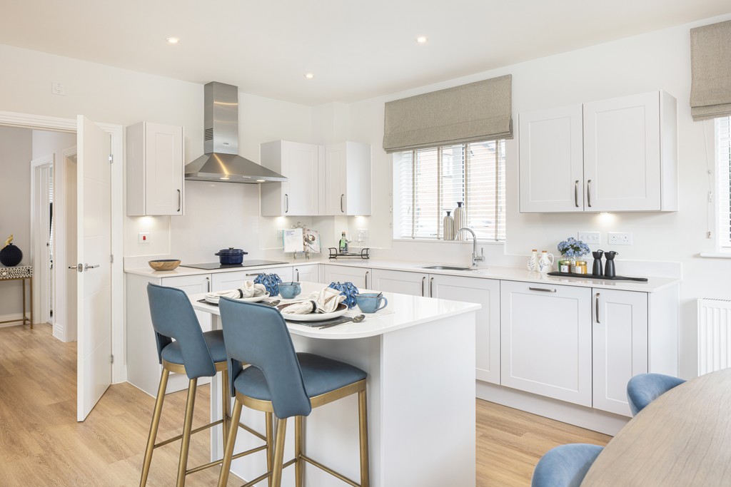 Boasting impressive living spaces, the 4 bedroom Silverbell is a perfect family home, whether it’s the extra-large sitting room, with bay window at the front and French doors leading out to the garden at the back, or the light-filled, dual aspect study/family room. Also on the ground floor is the spacious, triple aspect kitchen/dining room, featuring two sets of French doors opening out to the garden, while the utility room will help keep your living spaces clutter free.