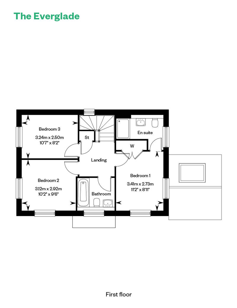 Two enticing options present themselves on entering The Everglade. Will you explore the large sitting room, dual aspect and running the length of the home? Or will you get acquainted with the spacious kitchen/dining/family room? With its set of French doors leading out to the garden, this flexible interior will have your cooking, family meals and playtime covered.