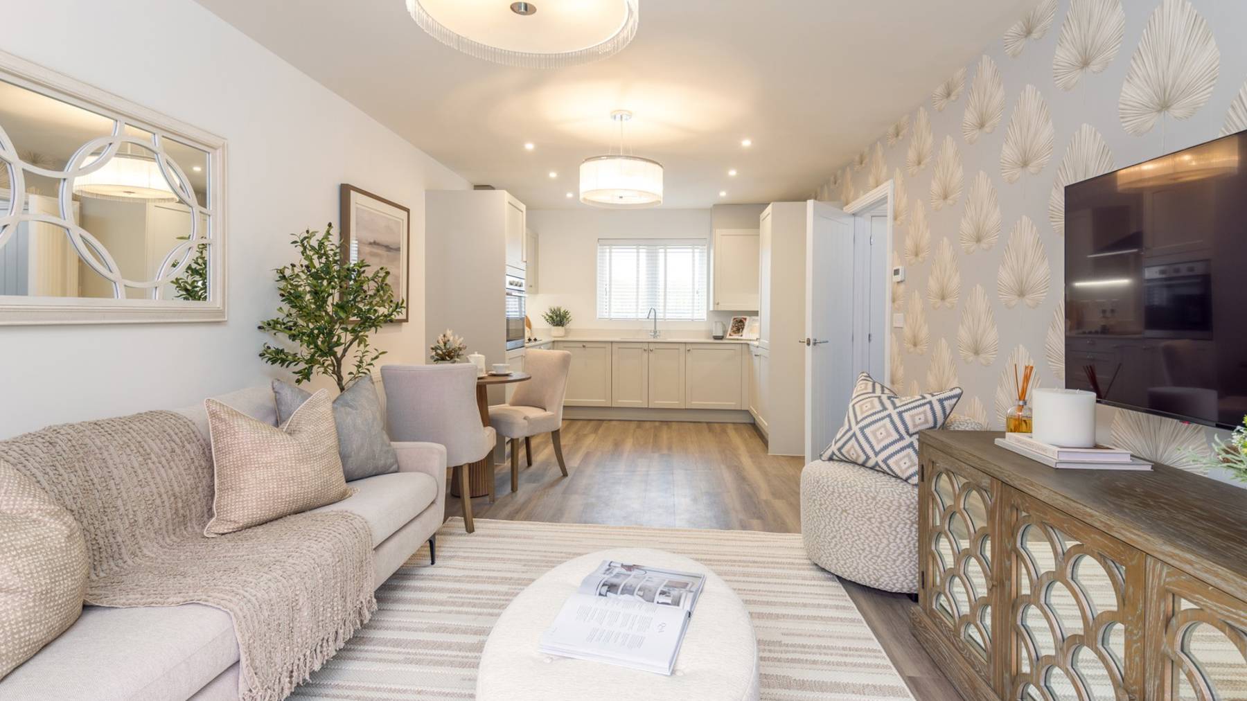 Open plan kitchen/living/dining space with plenty of natural light