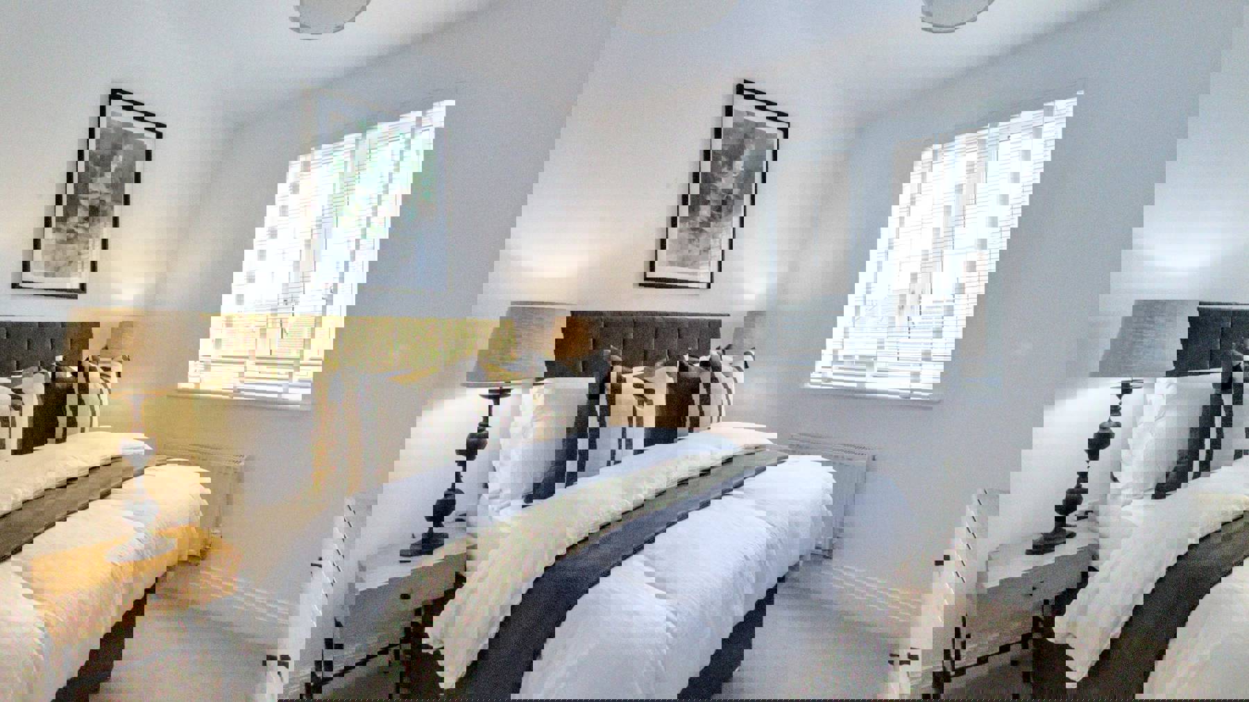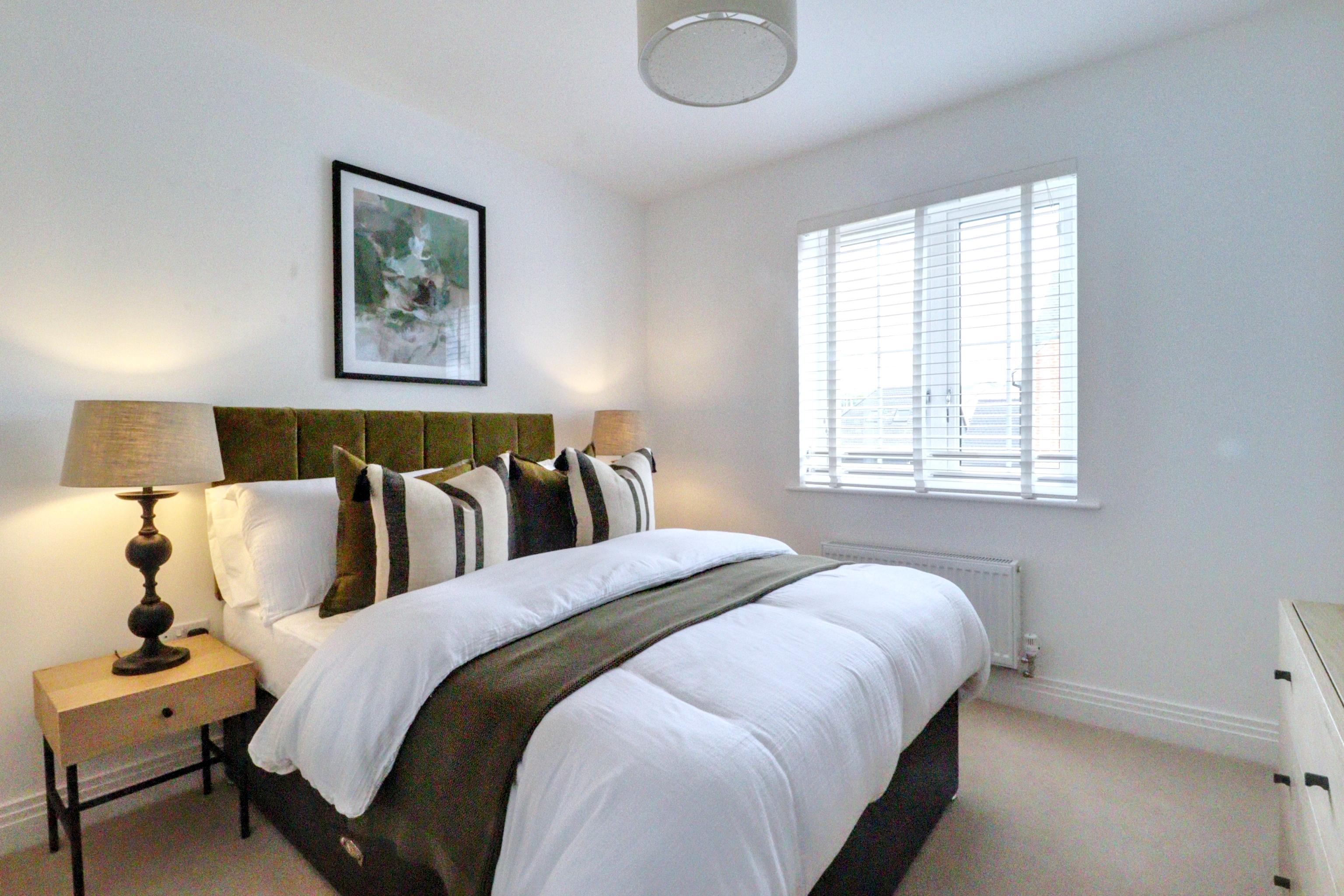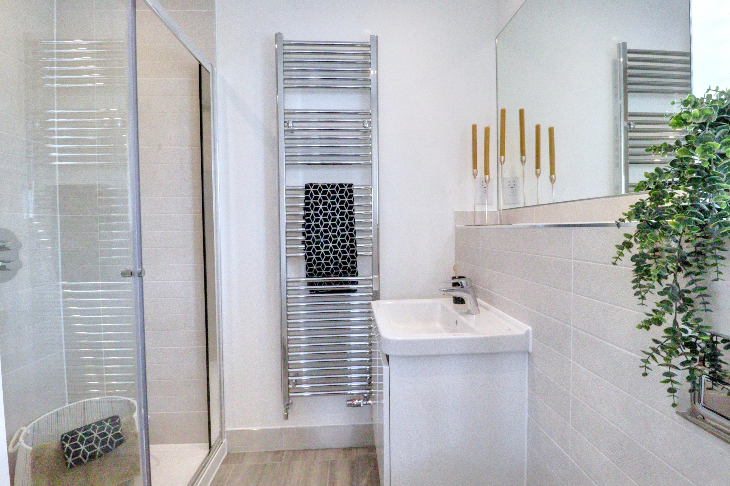 Upstairs you’ll find a contemporary family bathroom with fitted mirrors and sensor lights, integrated storage and four bedrooms, with fitted wardrobes to two, and an en suite to the primary bedroom.