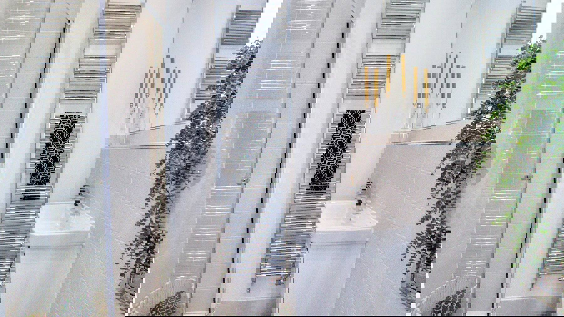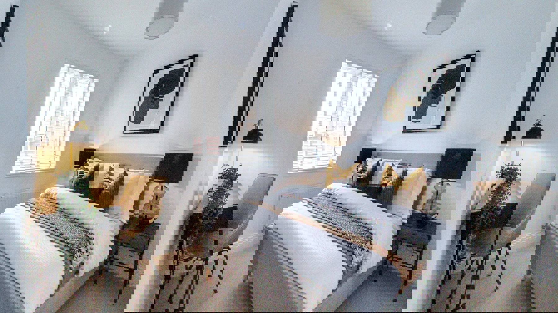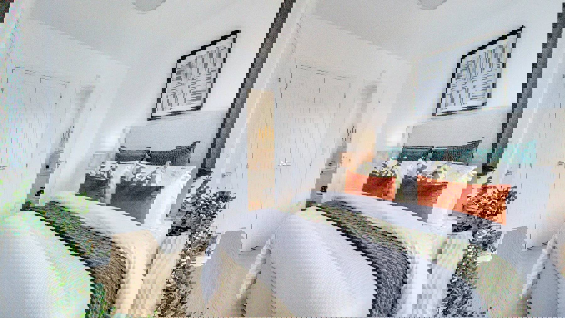 Upstairs you’ll find a contemporary family bathroom with fitted mirrors and sensor lights, integrated storage and four bedrooms, with fitted wardrobes to two, and an en suite to the primary bedroom.