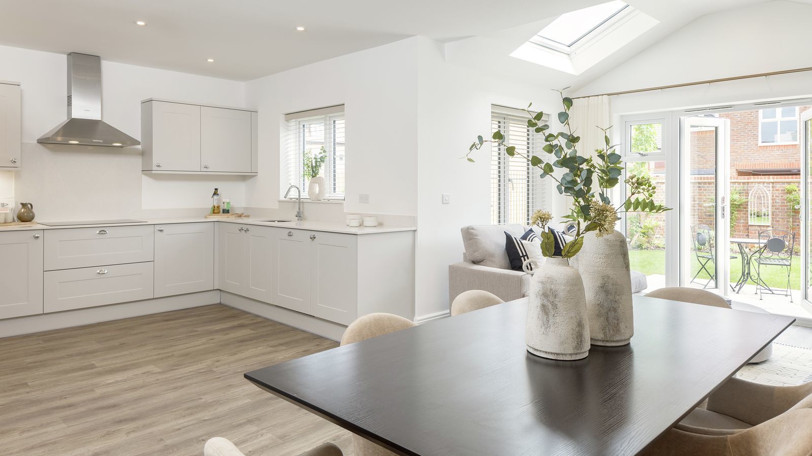 This attractive double fronted detached home maximizes light and space with dual aspect sitting room creating a cozy atmosphere to relax and unwind. The generous kitchen/ dining / family room is ideal for quality family time, with double doors extending out onto the turfed rear garden providing the perfect space for either hosting a formal dinner or more informal barbecue. A WC and store room complete the ground floor.