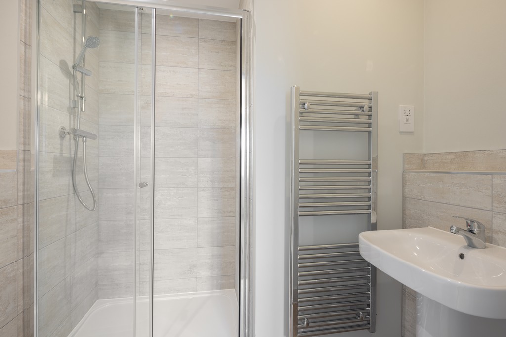 En suite bedroom one and the front-facing bedroom three enjoy exclusive use of the first floor, complemented by a stylish separate bathroom. Upstairs, bedroom two spans the entire second floor — a generously sized en suite retreat — accompanied by a versatile study, perfect for work or relaxation.