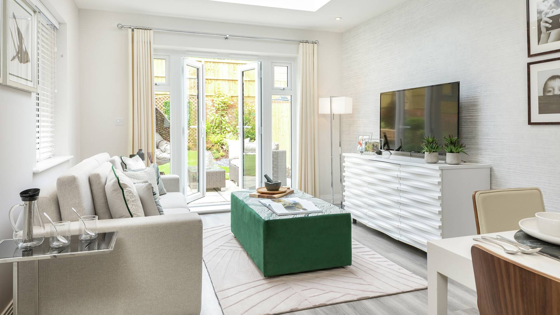 Formal occasion or family time? The Kiswick can satisfy either with ease. To the left of the main hallway, with large bay window, the sitting room exudes elegance. Notice the WC and handy storage space as you walk back across the hallway. The kitchen/dining room, with integrated appliances, will soon become the heart of this home. This space extends further to the family room. With double French doors opening to the garden, this provides the flexibility you need as your family grows.