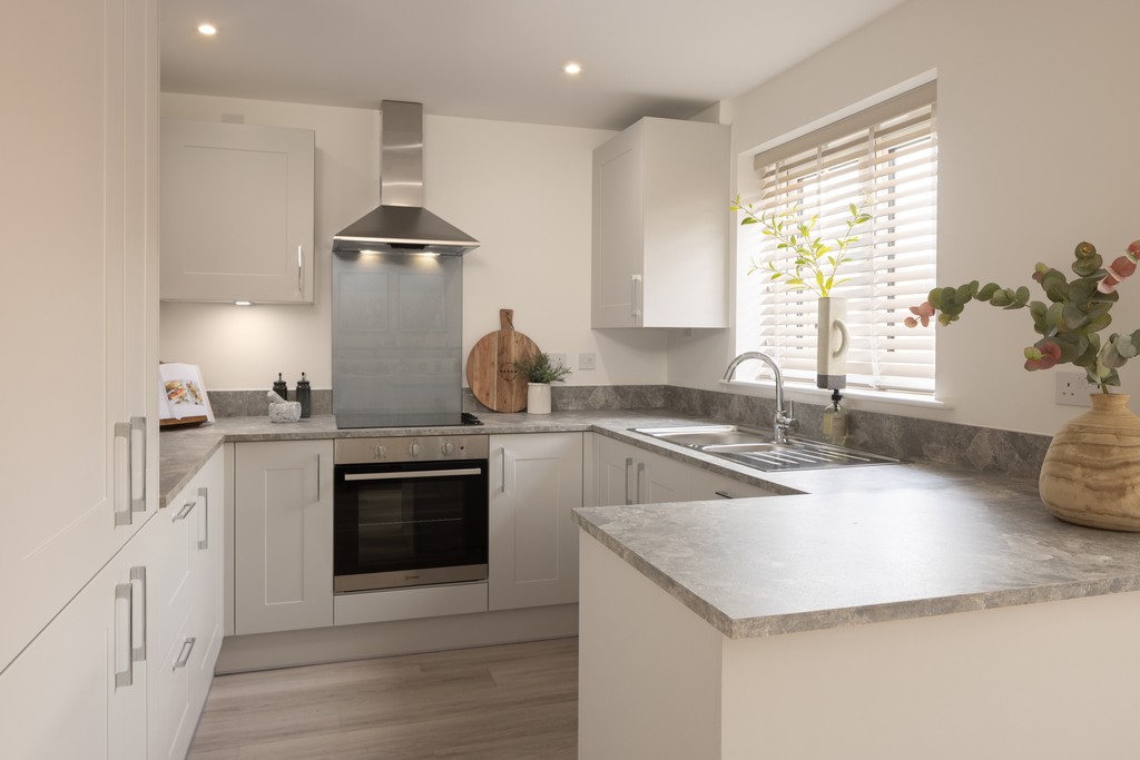 Attractive linear design means that the living spaces in this home flow perfectly. The hallway opens onto a spacious front sitting room. The open plan kitchen diner is fully fitted with quality appliances, which extends to a light and airy family room opening out to the rear garden. Ideal for eating and entertaining together, for play and for relaxation. There’s also handy storage and a w/c on this floor.
