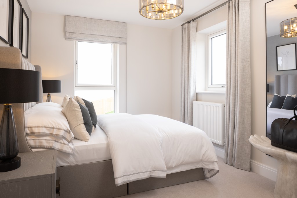 - Impressive primary bedroom with fitted wardrobe and stylish en‑suite bathroom.