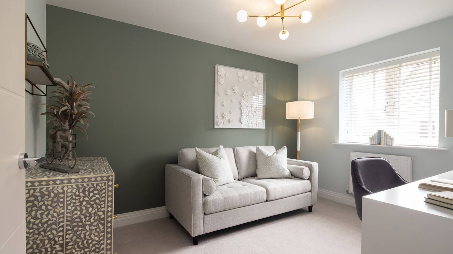 This stylish 2 bedroom home offers space and flexibility in abundance. A spacious sitting room at the rear opens out to the fully lawned garden through a set of French doors, while at the front, the good-sized kitchen by Tailor Made Kitchens comes complete with integrated appliances.