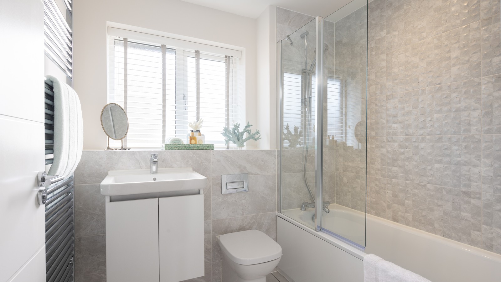 The first floor divides neatly between the primary bedroom, complete with built-in wardrobe and an en-suite featuring high quality Roca sanitaryware. Bedroom 2, overlooking the front of the home and a separate family bathroom.