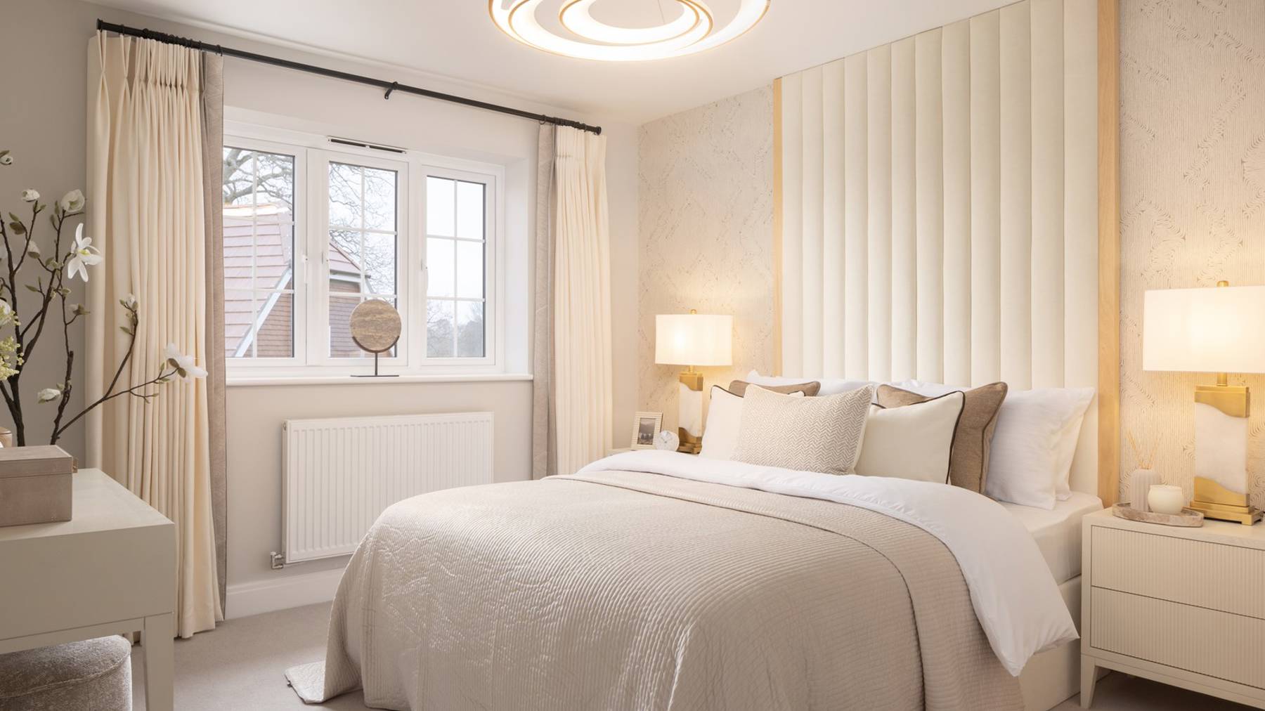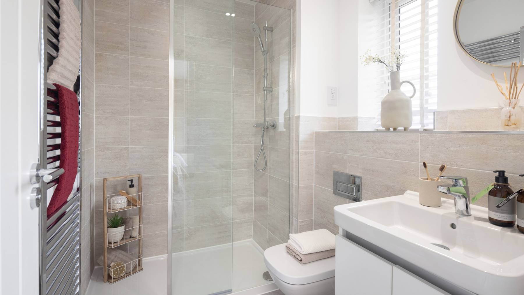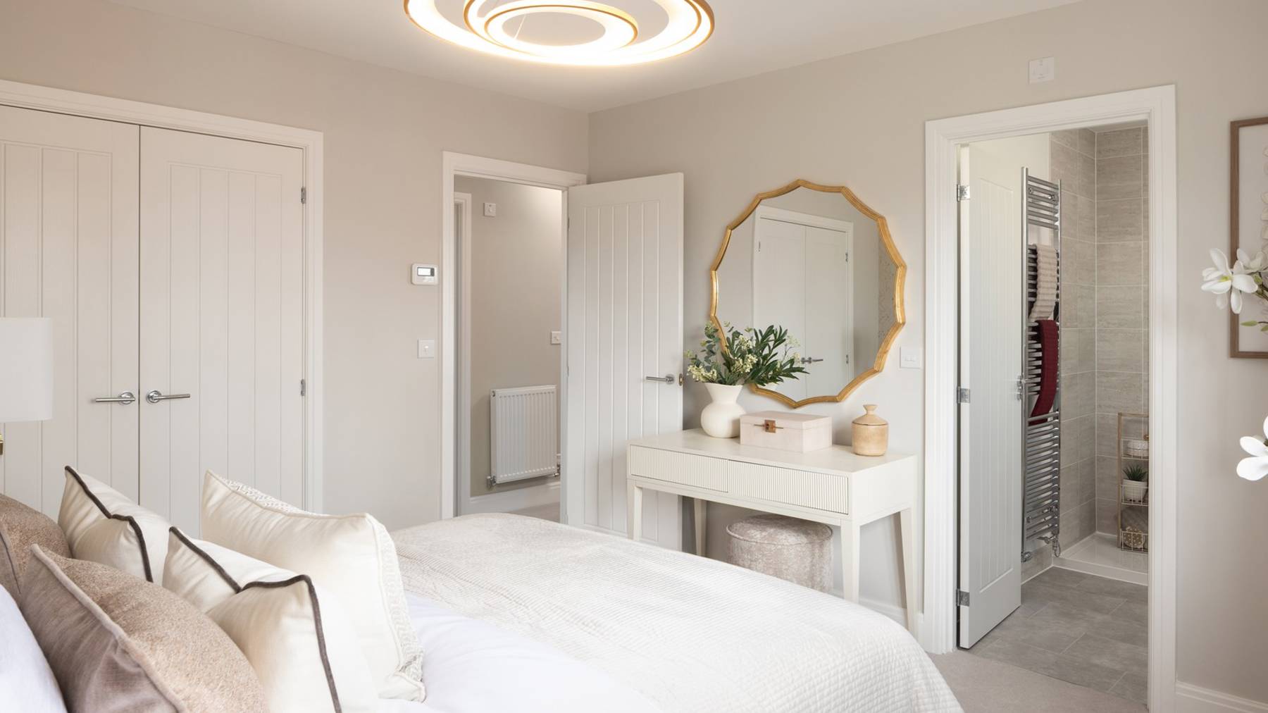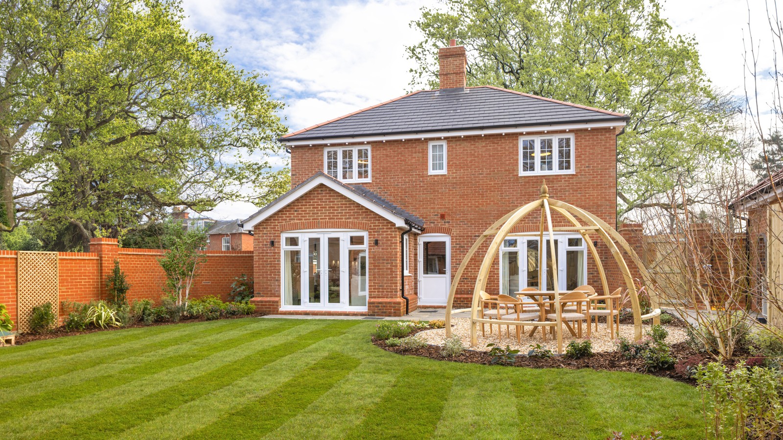 On the first floor are four generous bedrooms, with the primary bedroom benefitting from a fitted wardrobe and an en-suite with Roca sanitaryware. The three other bedrooms are served by a family bathroom, located opposite the stairs.