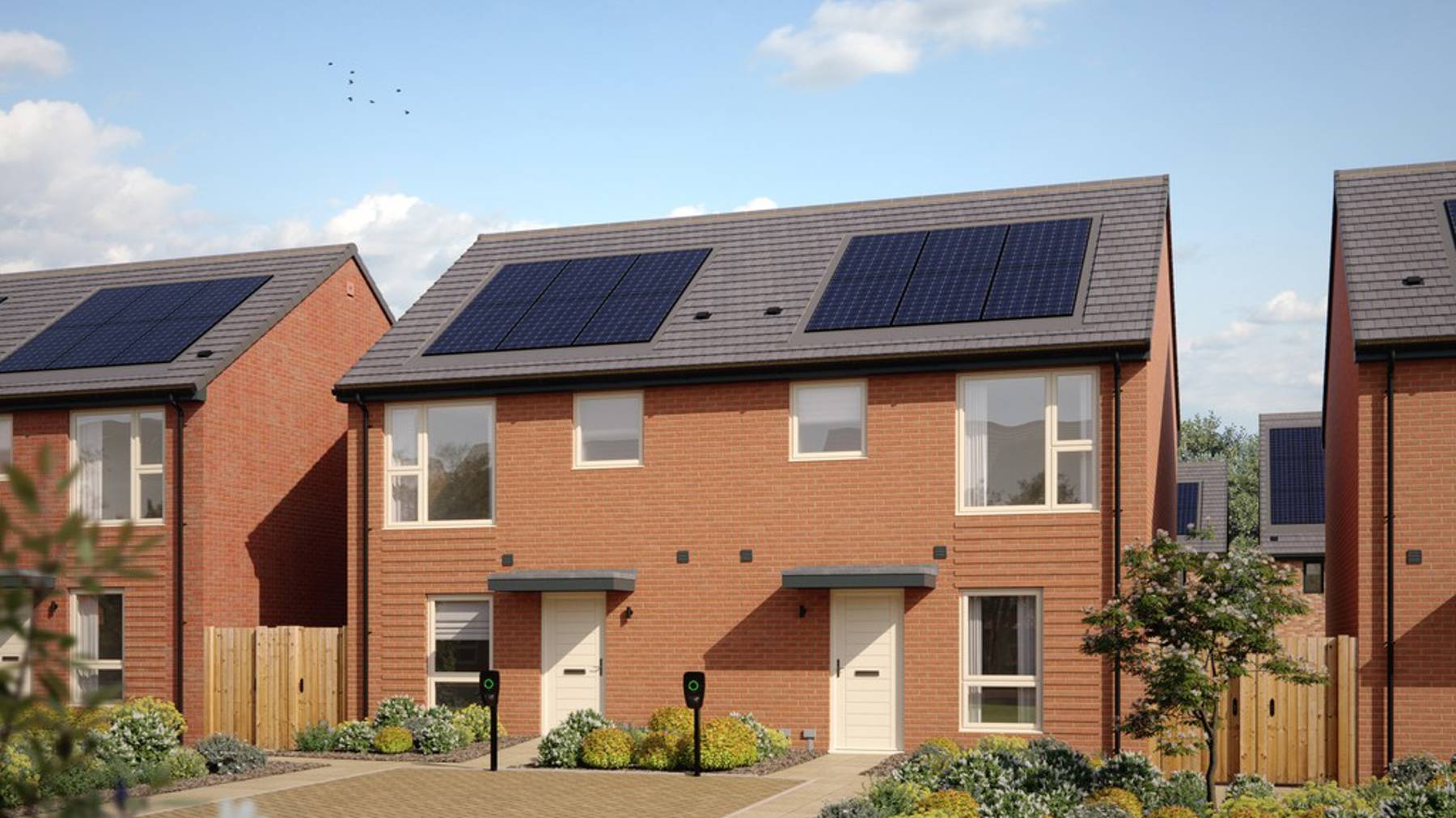 These homes are thoughtfully designed with energy efficiency, comfort and superior specifications in mind with integrated appliances, amtico flooring, fitted wardrobes, ample storage, solar PV panels, air source heat pumps, electric vehicle chargers, and turfed rear gardens. Helping you reduce your carbon footprint and utility bills.