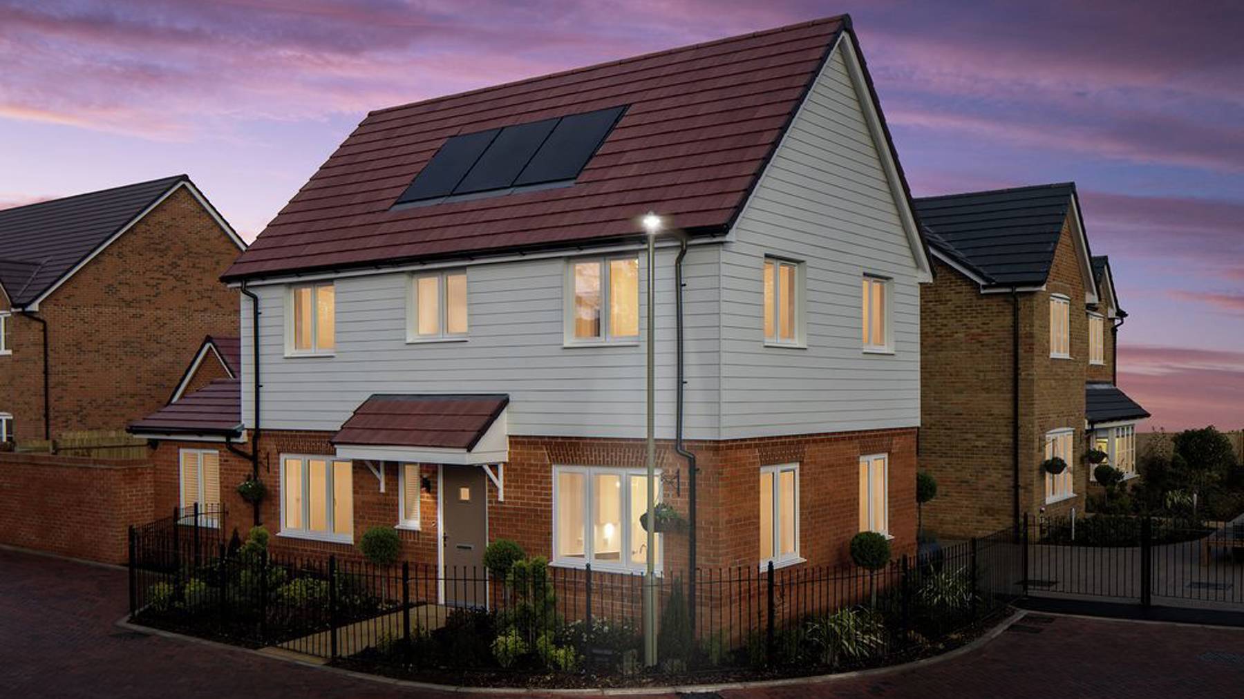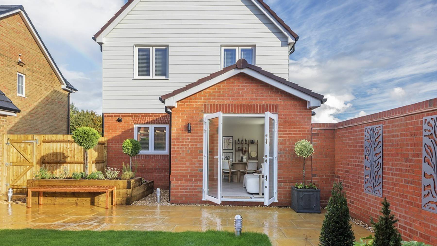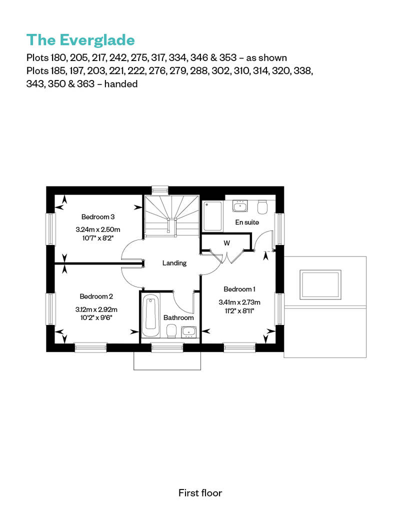 Open the patio doors to extend the space further into the turfed rear garden. Take a few steps to the first floor where there are three double bedrooms, a family bathroom and further storage. Bedroom 1 has fitted wardrobes and includes a much sought-after en suite. Bedroom 3 benefits from handy data provisions to allow for home working. To the exterior The Everglade comes complete with a separate garage and driveway.