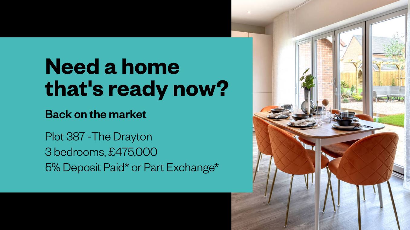 Don't miss out. Book an appointment to view our final 3 bedroom home on this phase. Available with 5% deposit paid*, ideal for first time buyers. Visit us today for more information on how we can help you move.