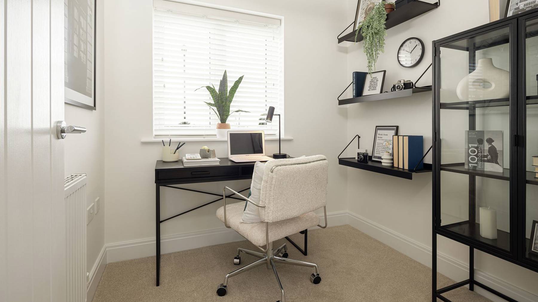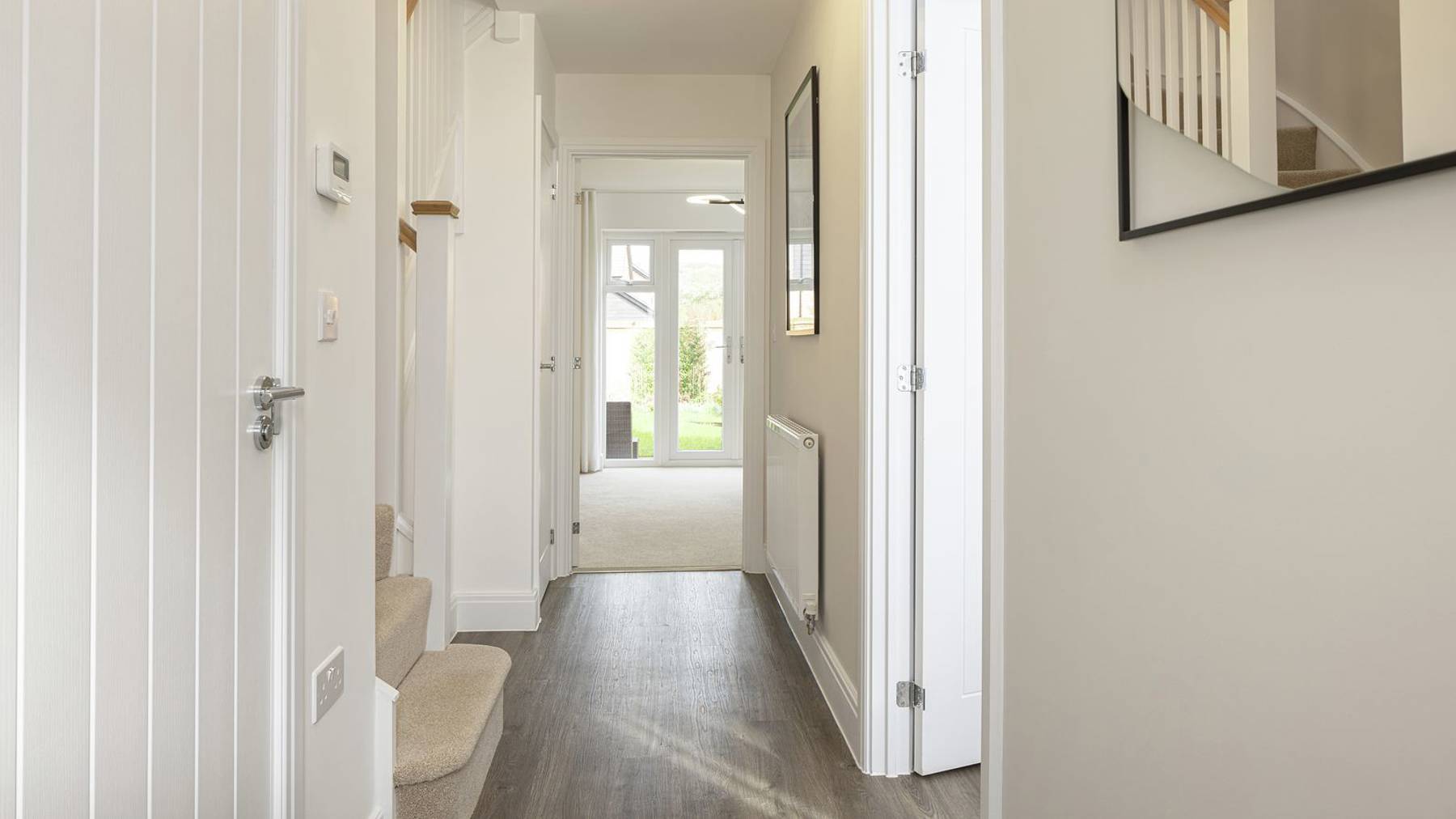 Wander along the elegant hallway past the WC and you will find a generous kitchen/dining room with plenty of worktop space and the latest integrated appliances. Head towards the sitting room and a large window and double patio doors allow light to flood in. The first floor is home to two bedrooms, a study, a family bathroom and better yet, bedroom 1 has its own en-suite bathroom and built in wardrobe.