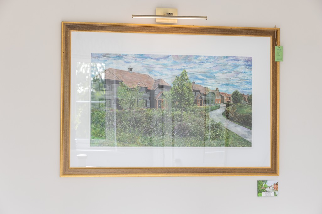 Art and design take centre stage throughout the interiors. Textile designer Nao.O.Fukumoto has provided a striking handwoven scarf, crafted using the traditional Japanese Ikat technique with natural silks, wools and linens. From the handcrafted ceramics of Wonersh Interiors to Susie Lidstone’s watercolours capturing Farnham’s character and the uplifting floral prints of Eimear Nichols, each piece brings its own personality to the Birchwood showhome.
