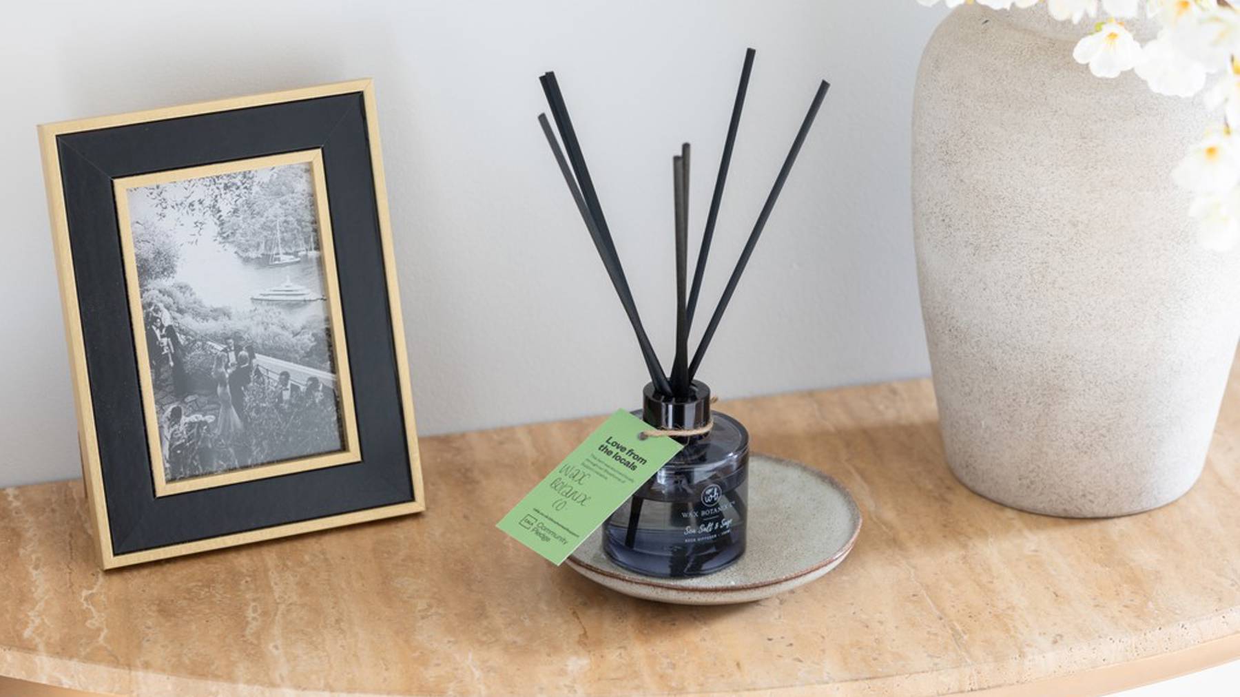 As you enter the showhome, welcoming scents fill the home thanks to a delightful reed diffuser from Wax Botanix, alongside eco-conscious candles from Rosemary and Ridgeway and natural soy soaps from Green Laurels.