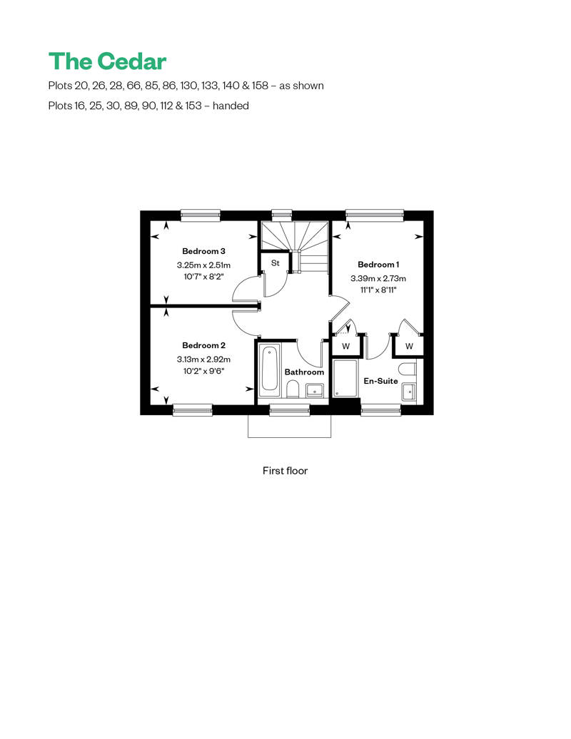 The ground floor of the Cedar provides ample living space. The open plan kitchen/dining/family room includes integrated appliances and is the true hub of the home. The separate sitting room features double doors, which over look and open out into the turfed rear garden and generous patio space, whilst a W/C and store cupboard complete the ground floor.