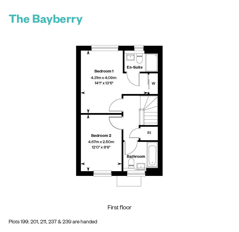 The Bayberry enjoys an elegant and contemporary layout. The hallway leads directly into the generous sitting room, ensuring that you and your guests immediately feel at home. Whether enjoying family time or entertaining, you are only ever steps away from the WC and kitchen. The combined kitchen/dining room makes light work of mealtimes. Enjoy a breath of fresh air opening the elegant patio doors to your own private garden, while a store cupboard keeps mess to a minimum. Two generous bedrooms are found on the upper floor. Take a look at the main bedroom. There are fitted wardrobes and an en suite. A beautifully appointed bathroom completes this level.