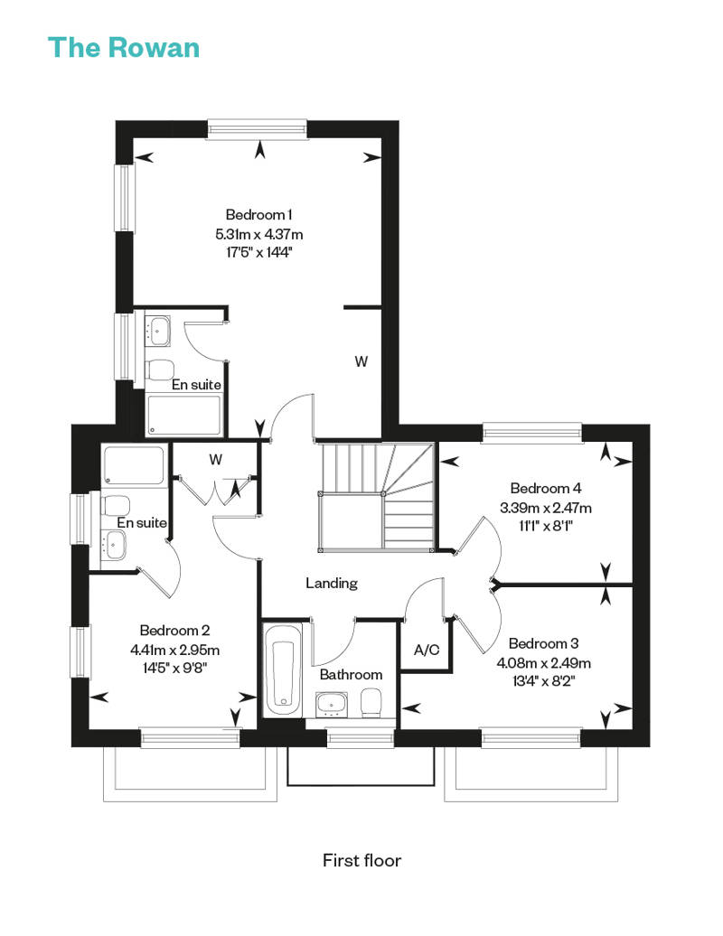 There are four bedrooms and a family bathroom on the upper floor. Bedrooms 1 and 2 feature en-suites and fitted wardrobes. Whilst the third and fourth bedrooms act as perfect guest or children’s rooms.